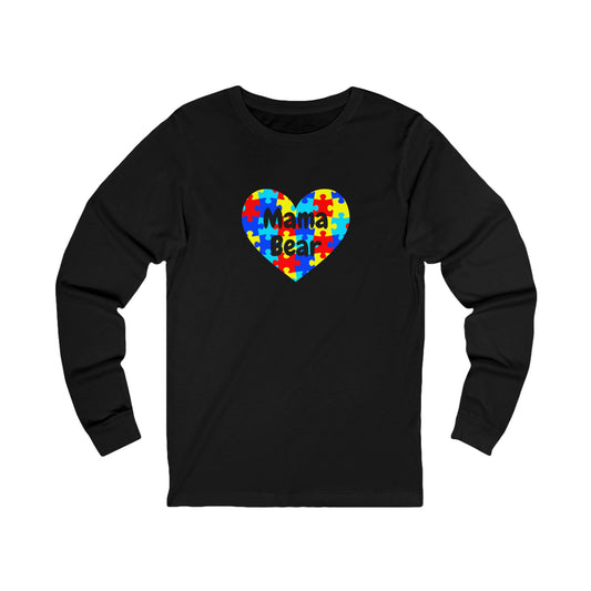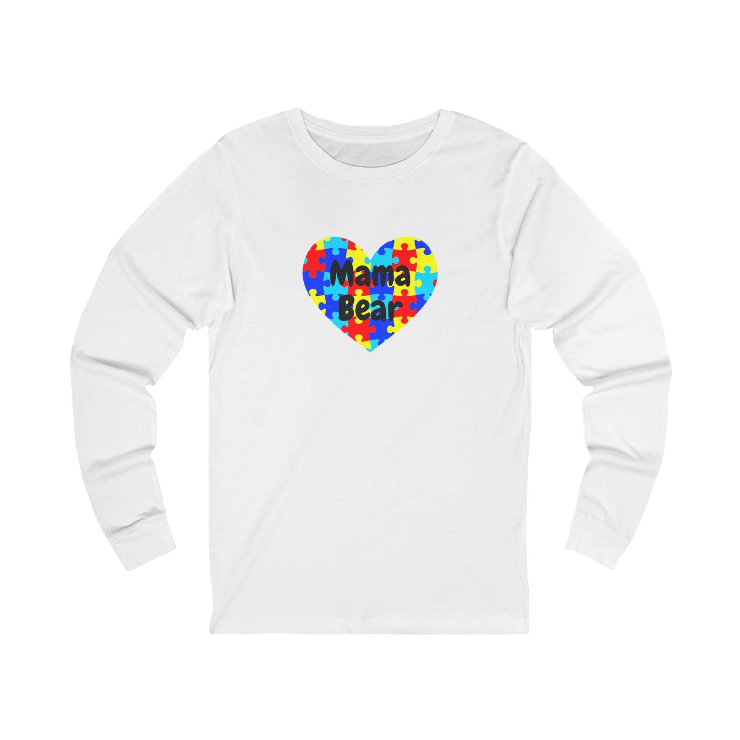 Mama Bear Autism Puzzle Heart Long Sleeve T-Shirt - Autism Awareness Mom Tee
